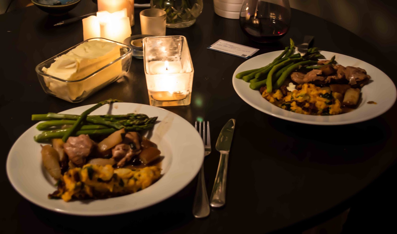 Not enough carbs in here for me so a few sweet potatoes or yams done in the oven are perfect on the side or some left over stamppot. We also had some delicious steamed asparagus with this meal.
