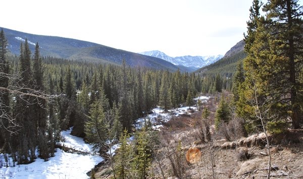 There are a couple of bridges then another beautiful meadow – great place to stop and have a break or picnic. One can go on to the longer loop but that is over 20 km total and we didn’t have the time (or the energy). The Powderface Link was the toughest part for us as it is about 3 km – you are going over a small pass so entirely half is uphill and second half is downhill. Problem was that our uphill climb was on the northern side and covered with snow and ice – made uphill hiking very slippery. It is very closed in as well – not much to see as far as views of the mountains etc.